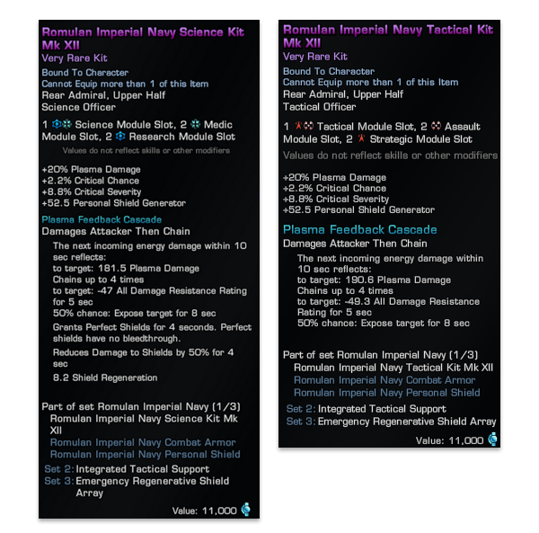 1. It seems to be doing some good on my own Romulan Sci character too.
