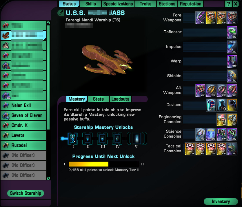 It will take me most of the weekend to work up to the ship mastery ability: After achieving level 5 in the Ferengi Warship’s starship mastery, you will unlock the Greedy Emitters trait.