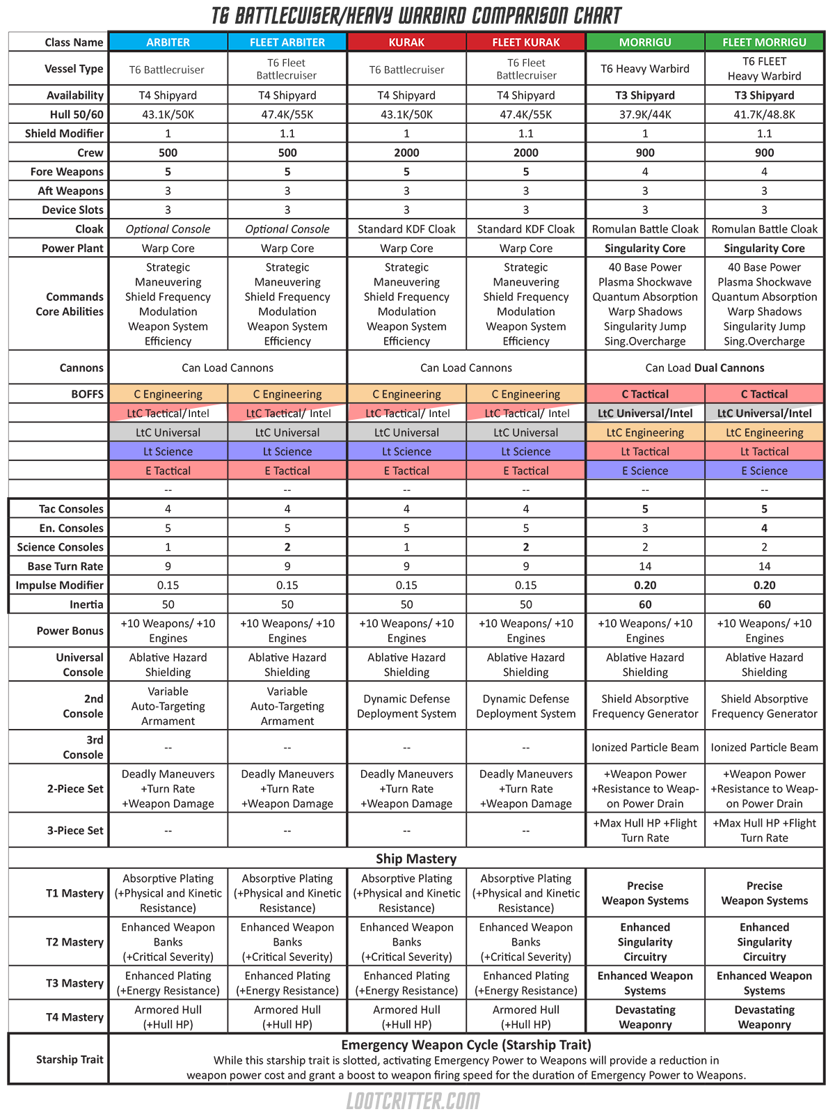 [T6] – Battlecruiser / Heavy Warbird Comparison Chart