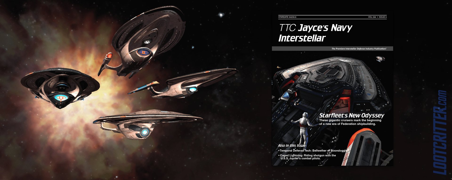 With tomorrows launch of the new flagships in Star Trek Online, Ship Designer Thomas Marrone produced an amazing fictional look at the creation of the Federations T6 flagships with his take on Jane’s Defense Weekly – Jayce’s Navy Interstellar.