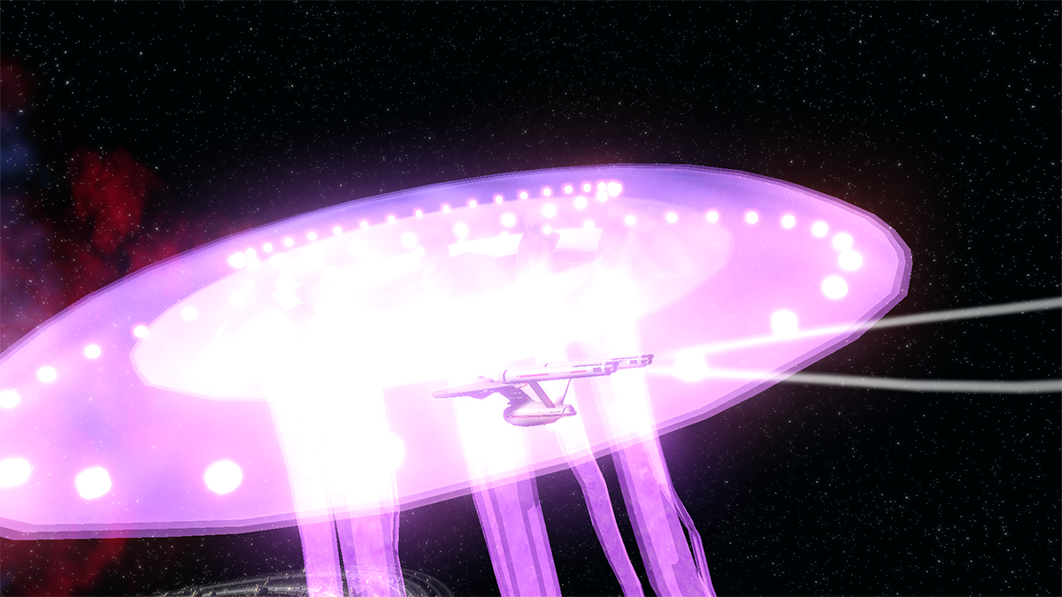 Oh, and go check out the Encounter at Farpoint entities in orbit of the planet. This one is mine. I’ve named him ‘Jelly’. Also – rogue asteroids, that when destroyed attract Gekli…